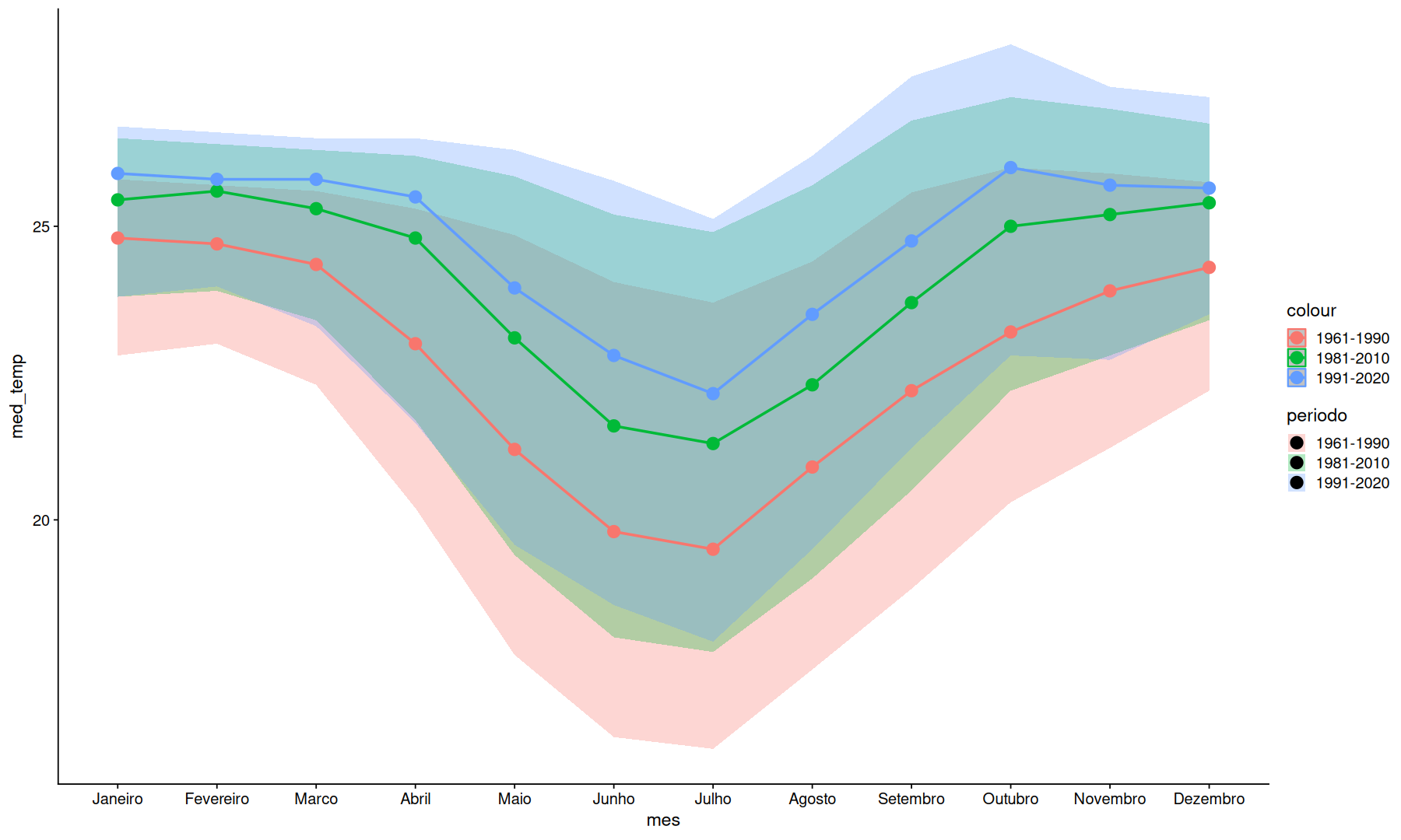 ggplot(aes(x=mes, y=med_temp, fill=periodo, color=periodo, group=periodo)) +