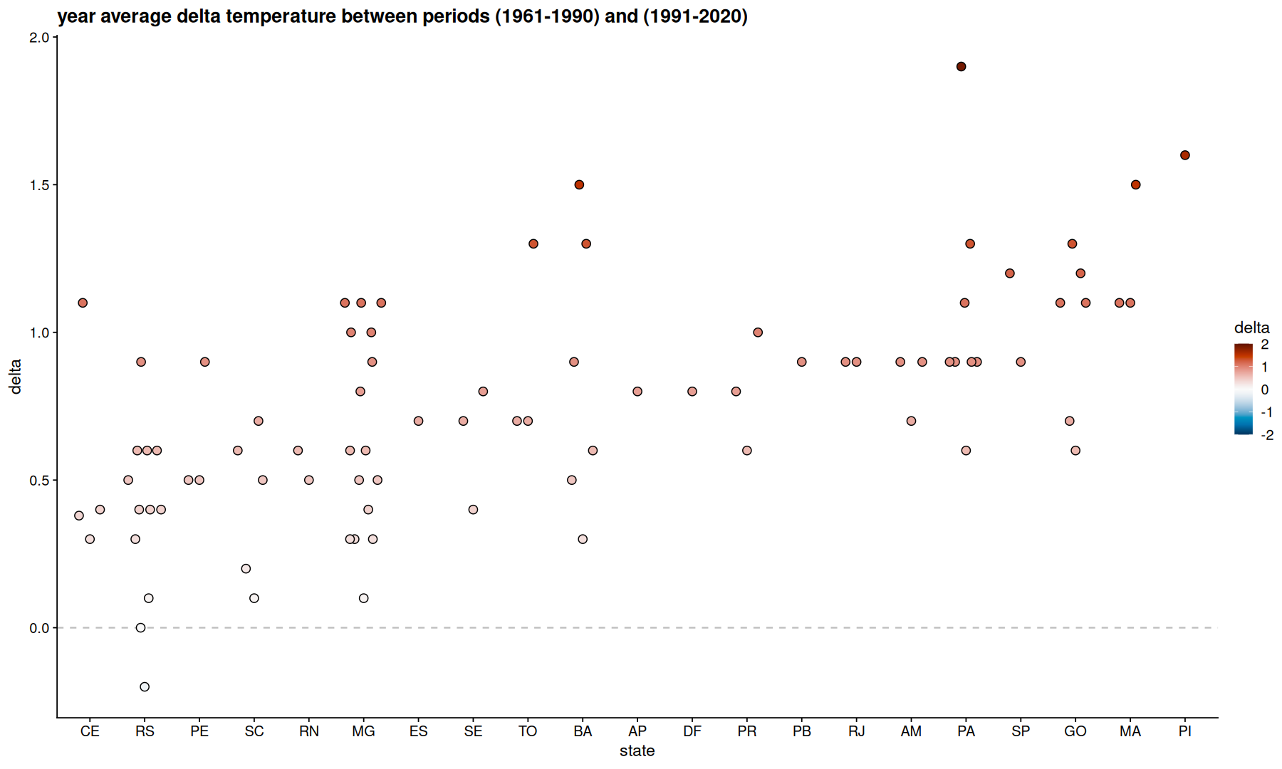 labs(x='state',title='year average delta temperature between periods (1961-1990) and (1991-2020)')