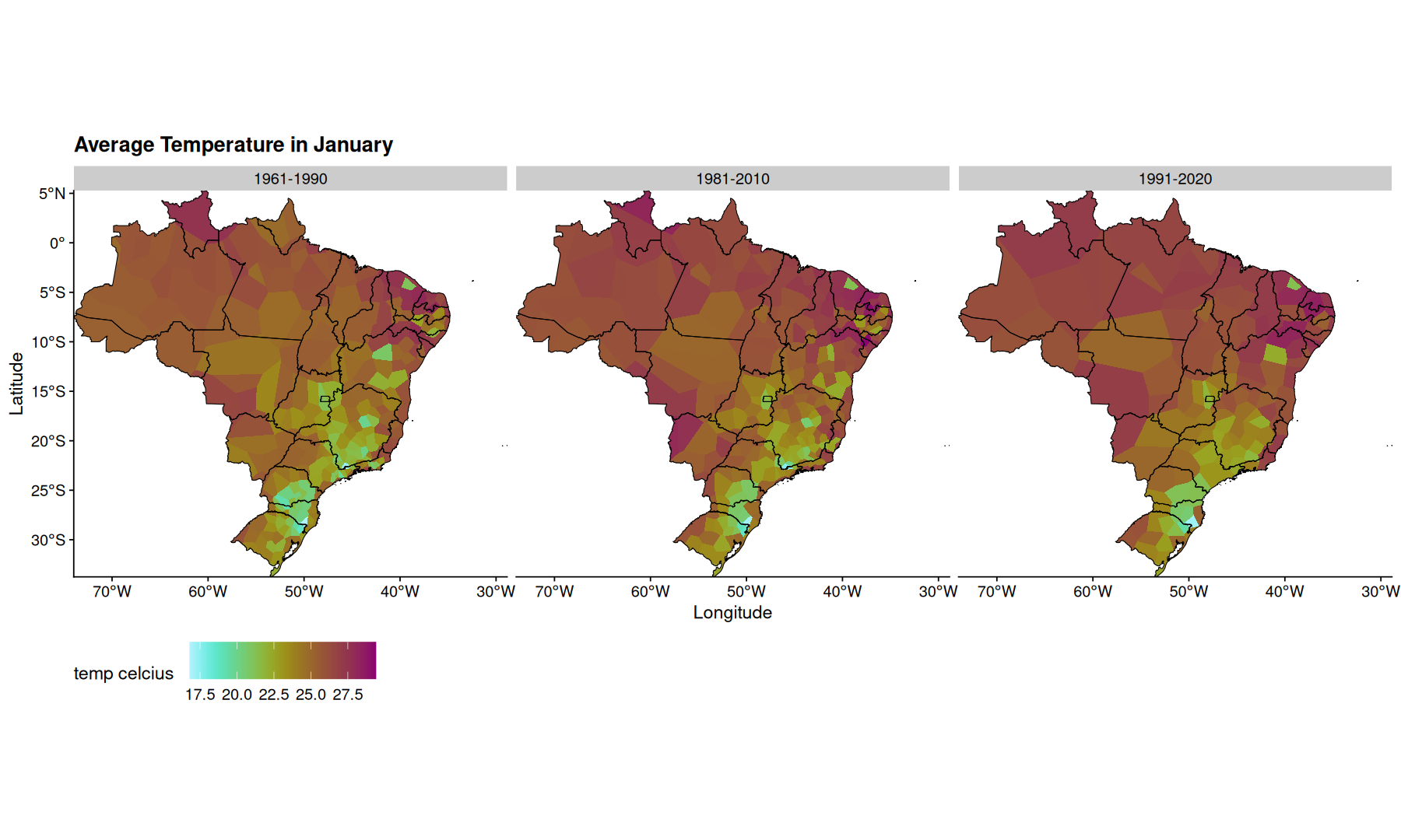 The data comprises of climate normals, a 30-year monthy temperature average of the periods of 1961-1990, 1981-2010 and 1991-2020.