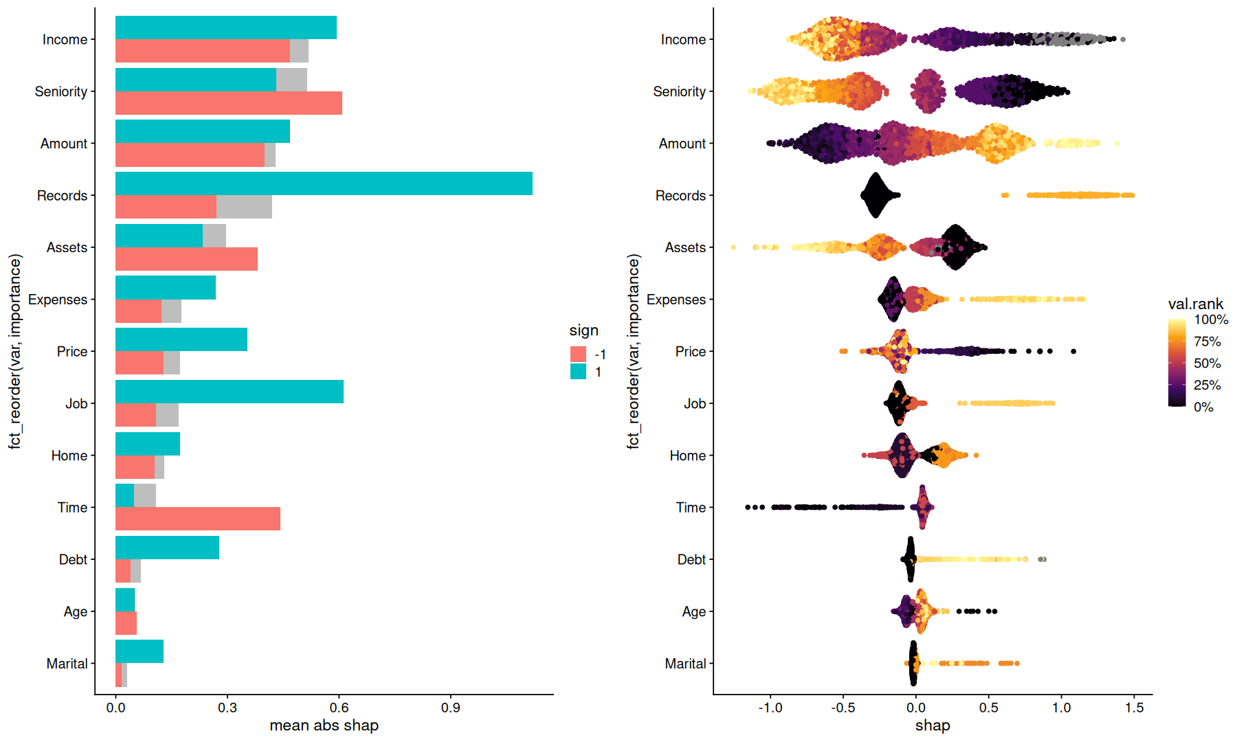 ggplot(aes(y=fct_reorder(var, importance), x=mean.abs.shap, fill=sign)) +